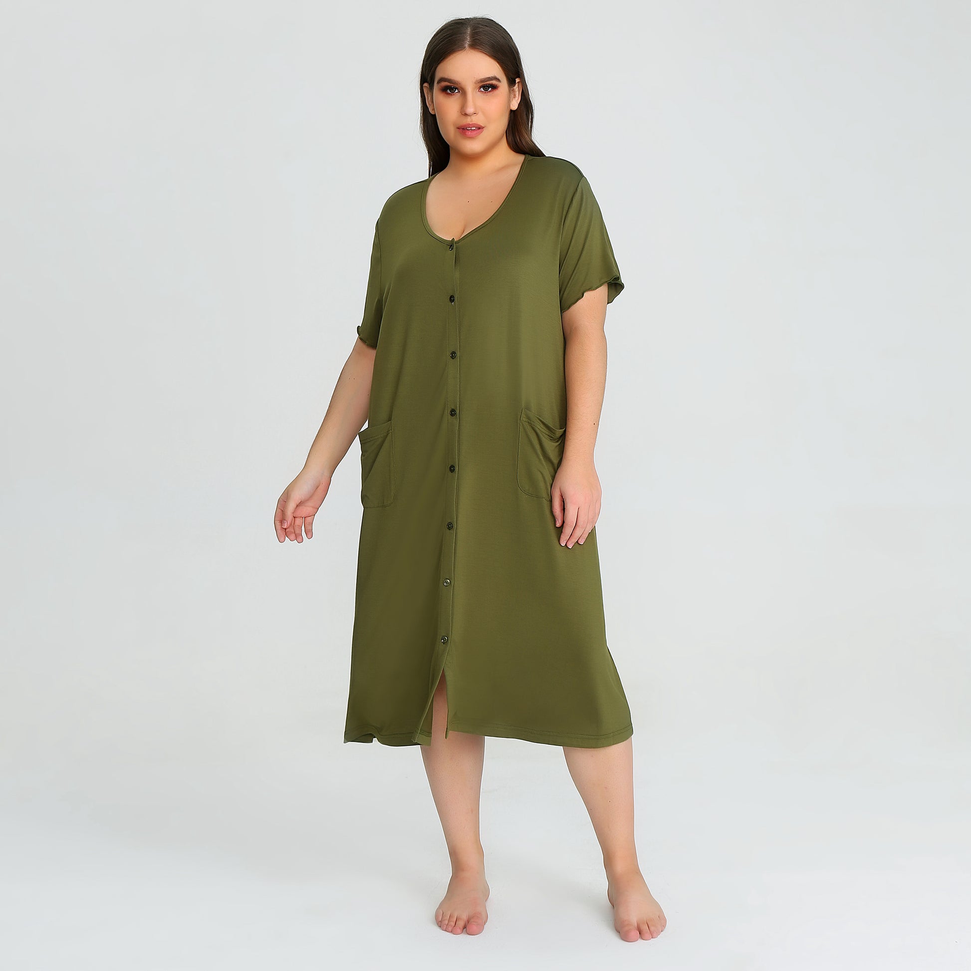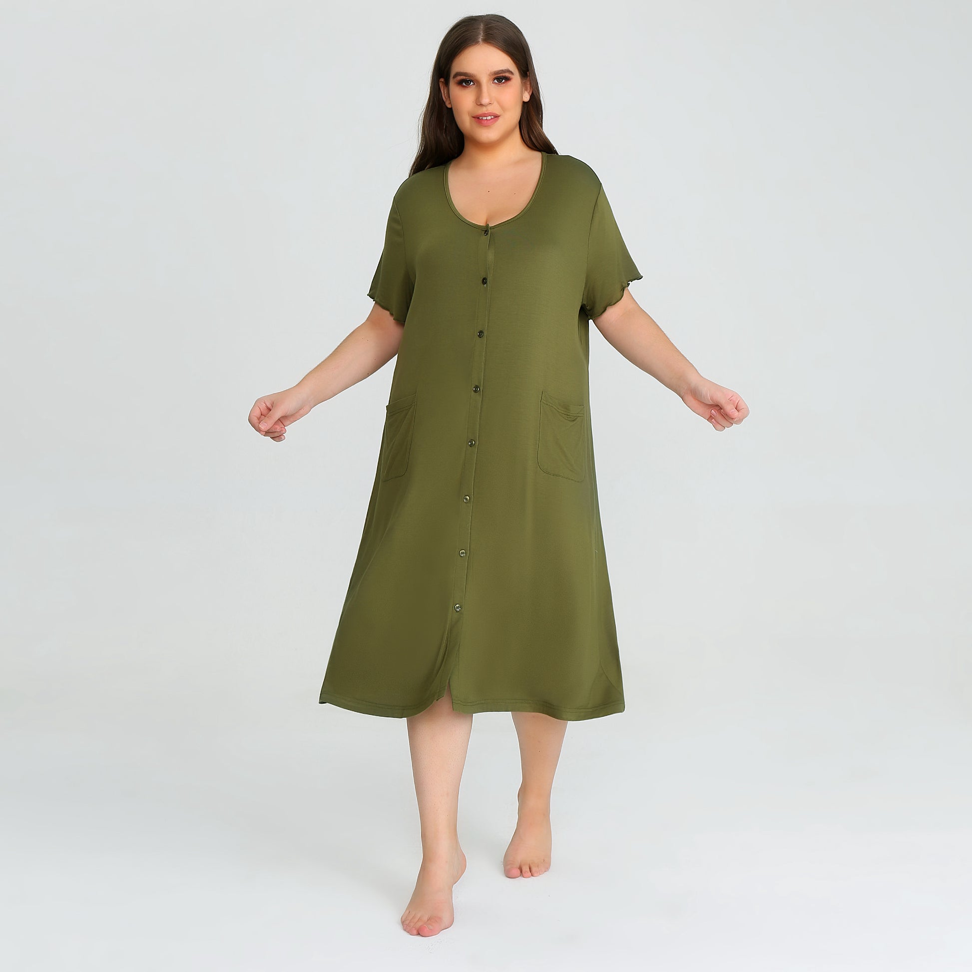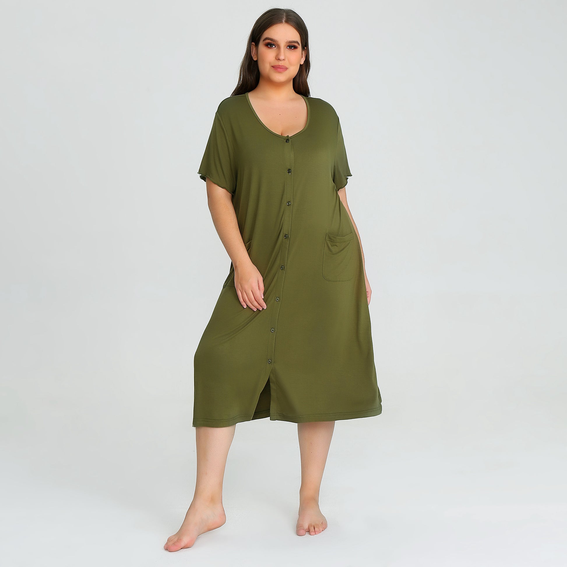 - ♥ SUITABLE DESIGN STYLE & COMFORT - The Ladies' plus size sleepwear pajama dress features a Short Sleeve Button Dress Top Solid Print Pajama dress with pocket for a better and relaxed fit. It is made of super soft stretchy and skin-friendly fabric, breathable and relaxed nightshirt is never tight or constricting.
